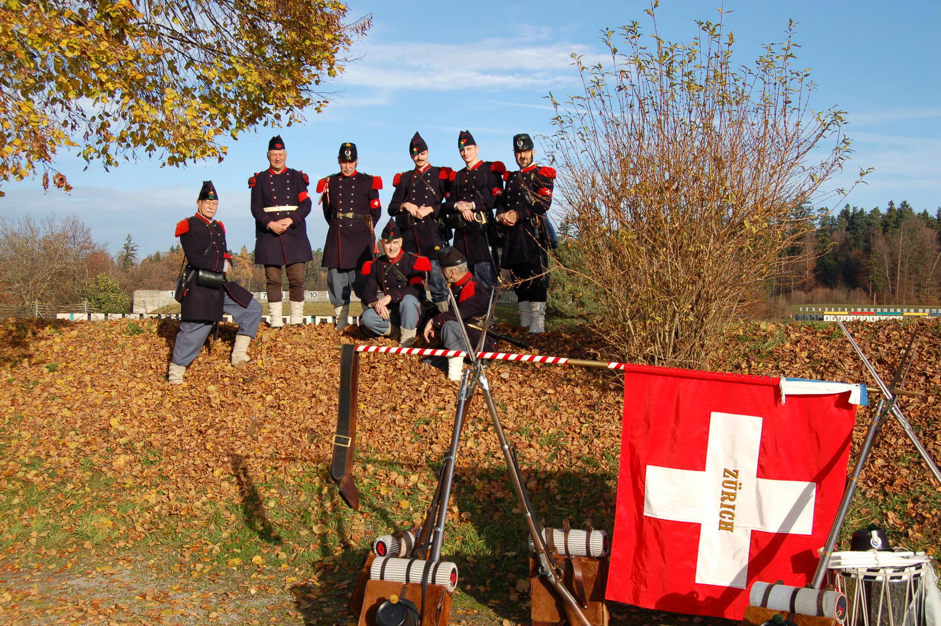Wir hatten einen wunderbaren sonnigen und milden Herbsttag und überall war gute Laune! Aber wir merkten heute gut, dass das Morgartenschiessen abgehalten wurde. Der heutige Tag begann mit dem Eröffnungssalut der Cp. 1861, ein Ereignis, das die Zuschauer immer begeistert.